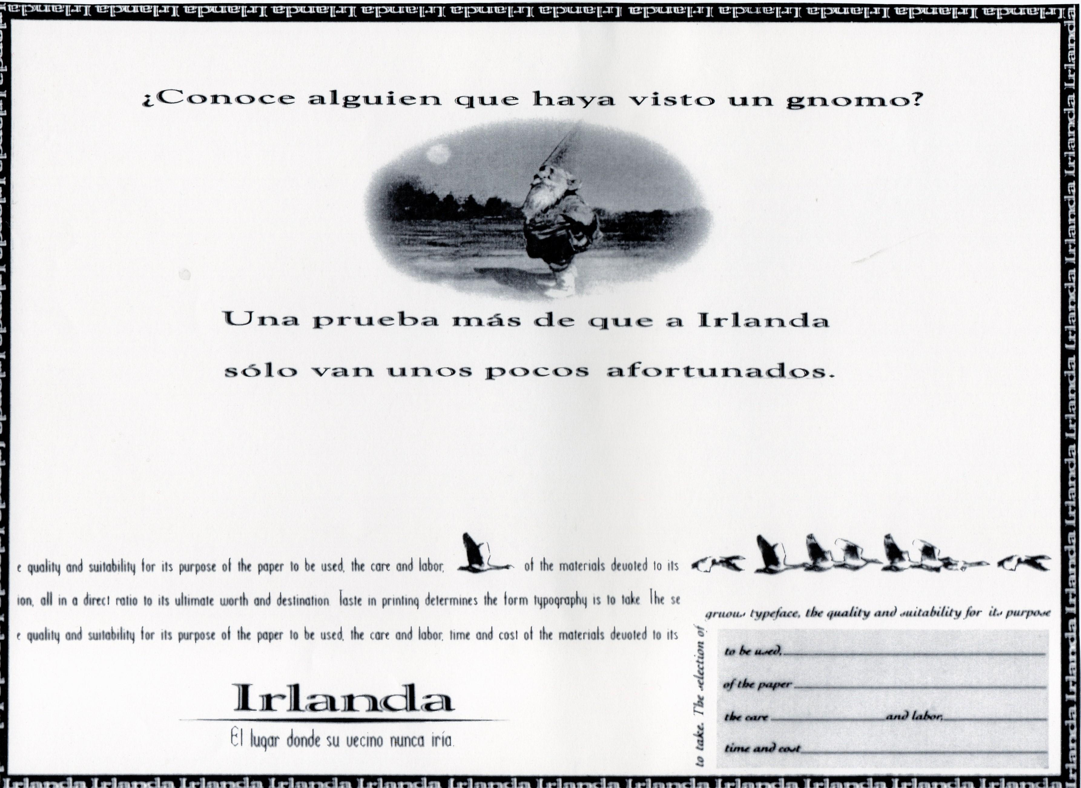 Durante mi etapa en Slogan tuve la suerte de trabajar en una campaña gráfica para promocionar el turismo en Irlanda. Estas que veis aquí fueron algunos de las piezas que fueron descartadas y nunca vieron la luz. Hasta ahora.