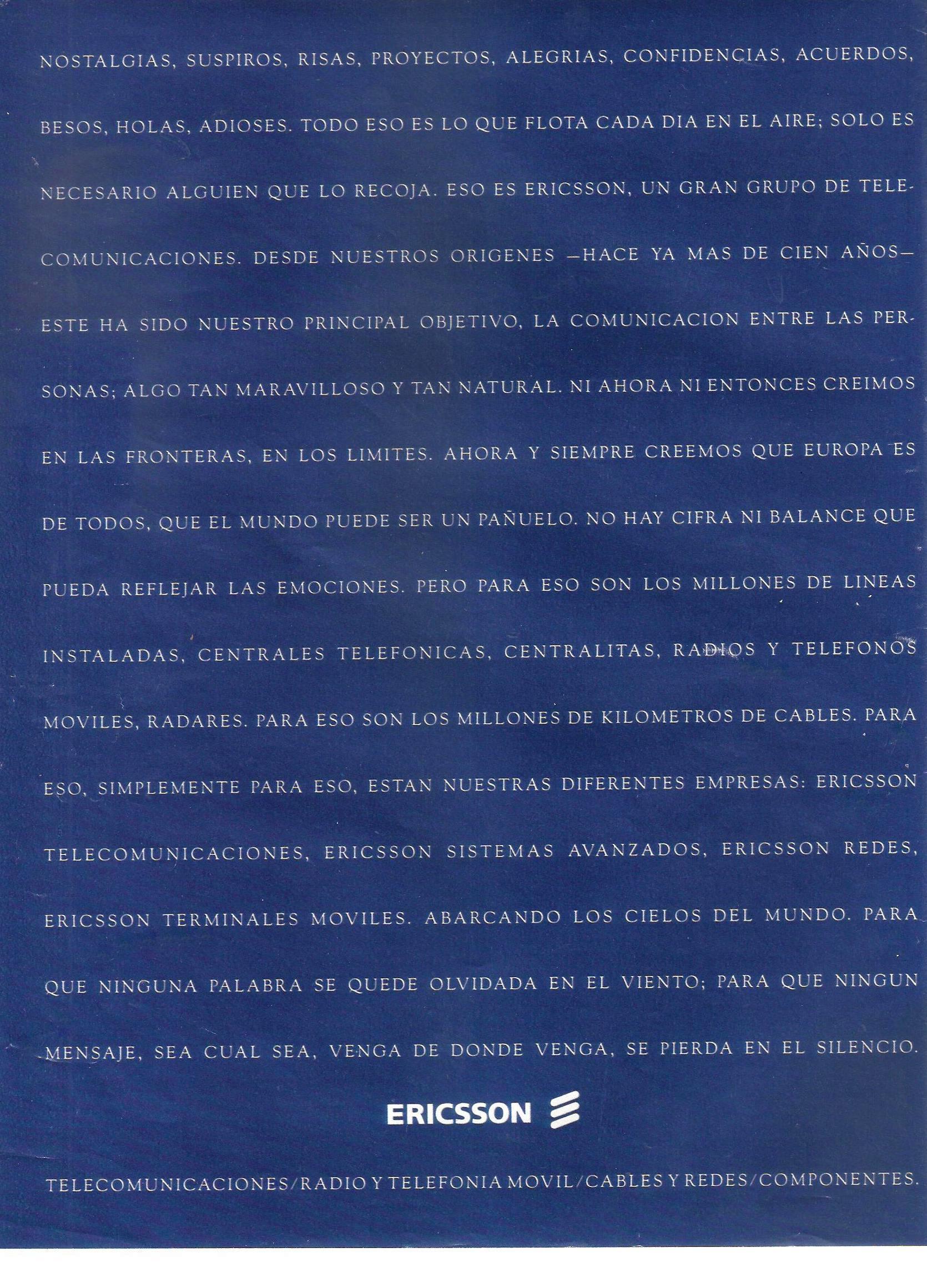 Por entonces, los privilegiados que disponían del un teléfono móvil, debían cargar, eso sí, con indisimulado orgullo, con algo parecido a un walkie-talkie. Con esta campaña institucional para Ericsson contribuimos en Slogan Madrid a hacer un mundo un poco más familiar y comunicativo.