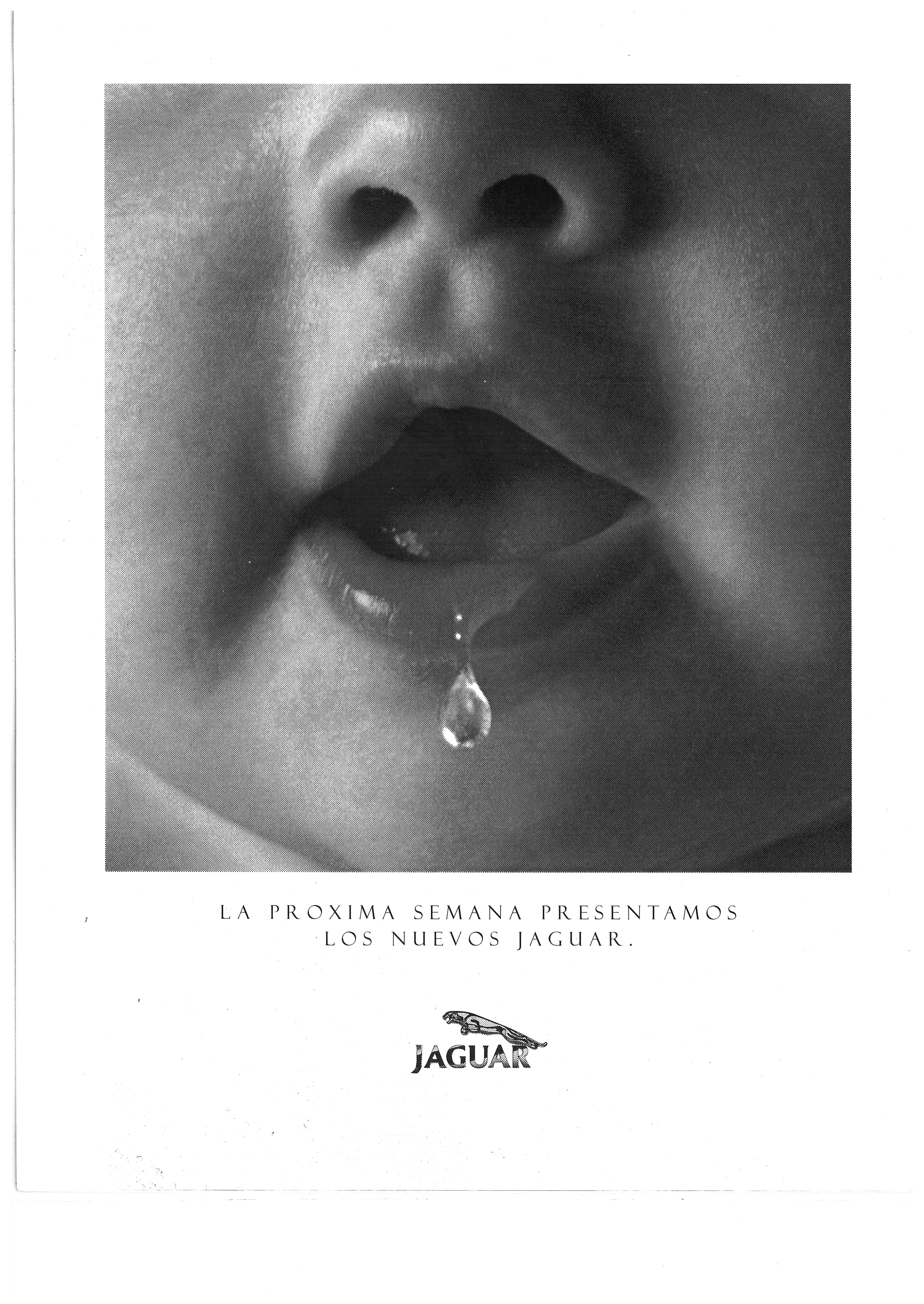 Sin duda, este el anuncio con el que he obtenido más reconocimiento como creativo tanto en los festivales publicitarios como en el mundillo profesional. Se trataba de la presentación de un nuevo modelo de Jaguar, un verdadero acontecimiento en el elitista mercado de los coches de lujo. Poco se podía decir acerca de su lanzamiento -un Jaguar es fundamentalmente un símbolo de distinción, clase y poder, un producto 100% emocional-, así que decidimos no emplear más palabras que las estrictamente necesarias. La imagen bastaba por sí sola para explicar las reacciones anímicas de los privilegiados compradores de un nuevo modelo de Jaguar. Este anuncio ganó sendos Oros en los festivales de publicidad de San Sebastian, FIAP y Clio, y estuvo a punto de llevarse un León de Oro en Cannes, pero uno de los miembros del Jurado inclinó la balanza hacia el lado del no, y me quedé sin el ansiado galardón. Curiosamente, ese puñetero miembro del Jurado era un creativo de Ogilvy&Mather Holanda, es decir, del mismo grupo publicitario al que pertenecía mi agencia de entonces, Bassat, Ogilvy&Mather.